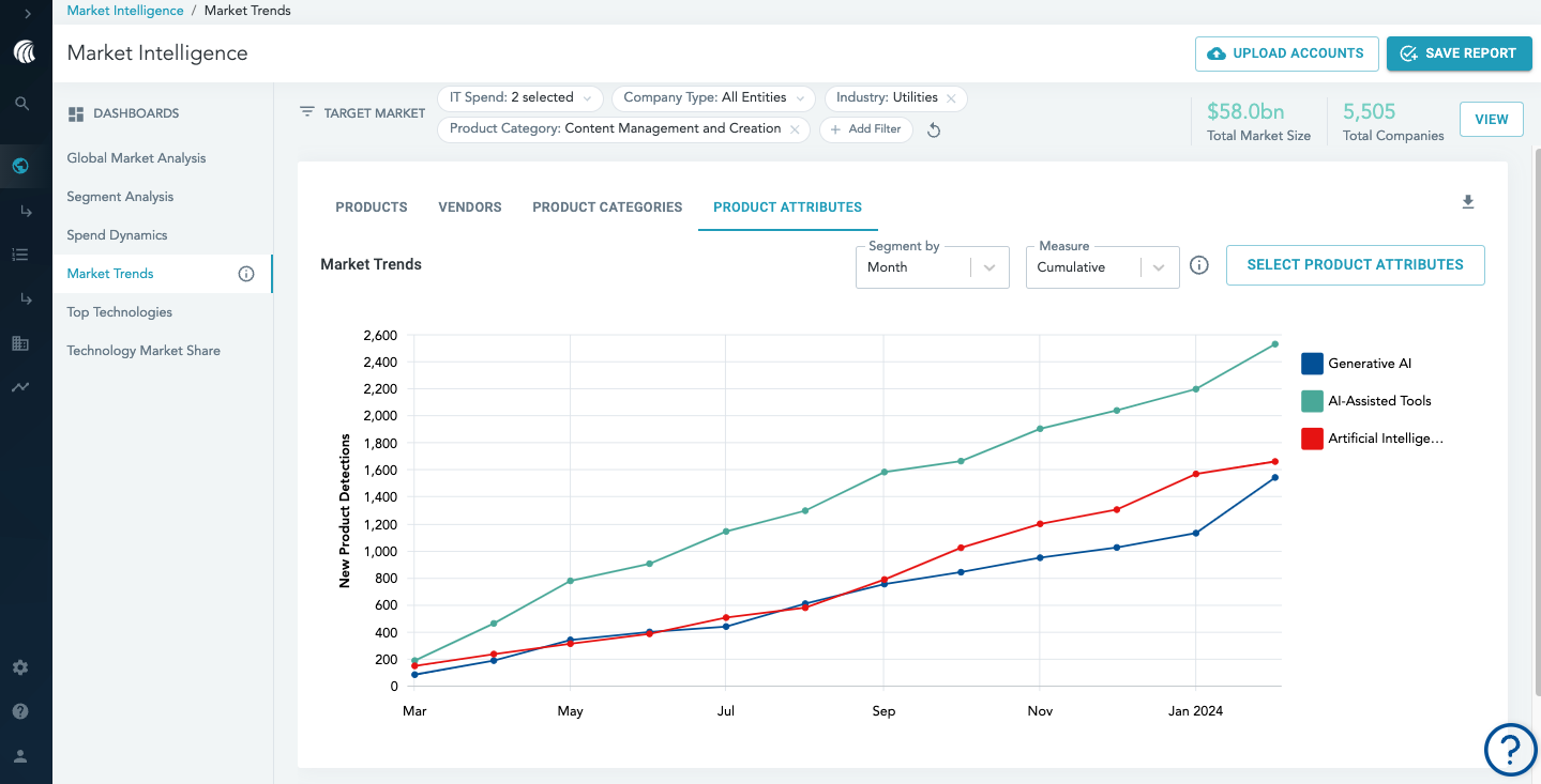 Being able to pinpoint exactly when a company is using a product can supercharge your engagement with prospects and customers. With the new Install Age Filter, you'll be able to filter by Install Age for Product, Category, and Attribute levels in Market Intelligence.