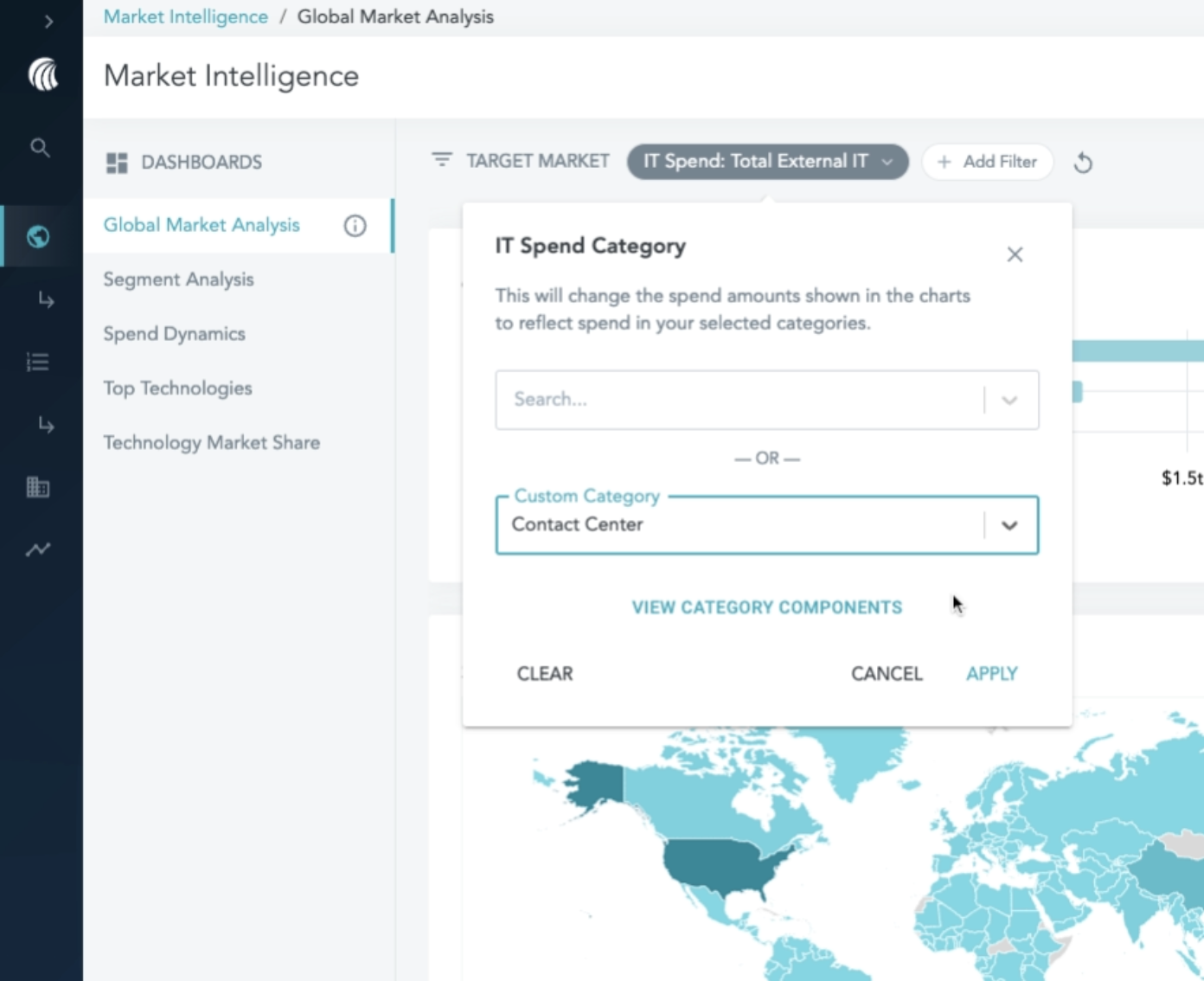 Custom IT Spend Categories are manually weighted by HG based on your business needs, allowing you an even more granular view of your markets. With your custom category now available in Market Intelligence, you can access these insights at any time.